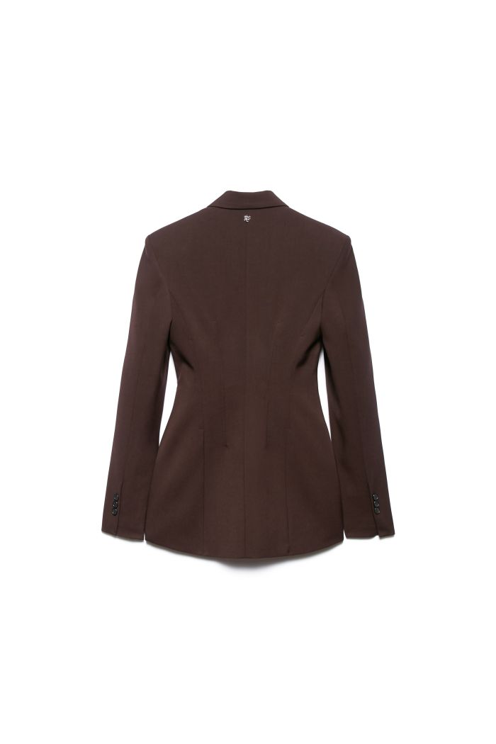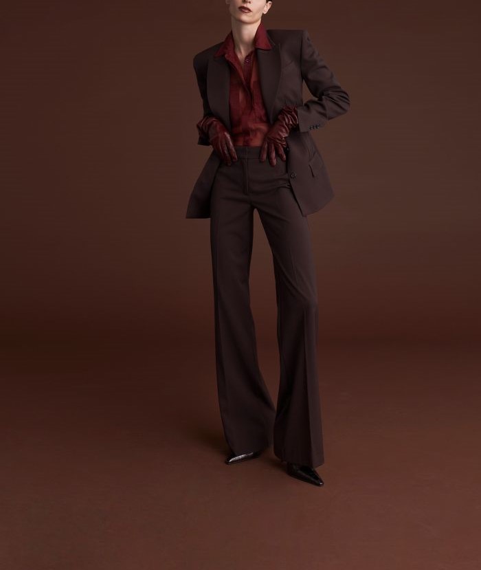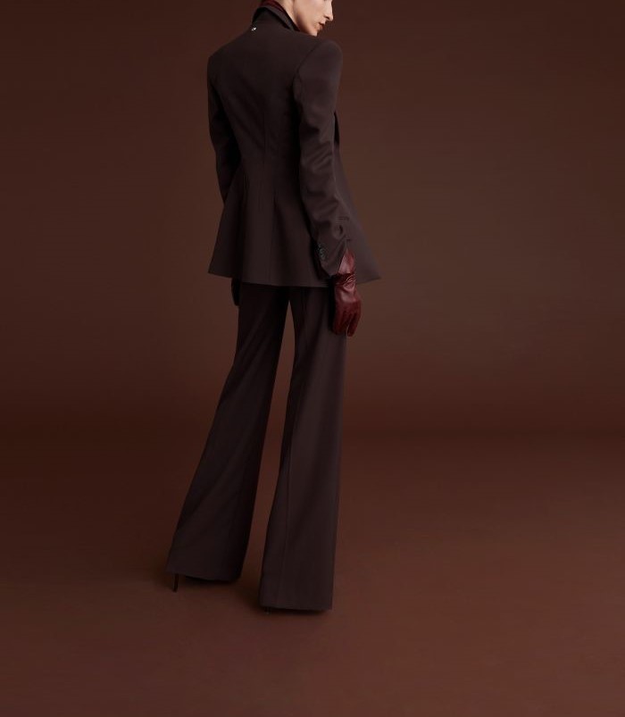 UNA REINTERPRETAZIONE BOLD DEL POWER DRESSING. LA GIACCA BUSTIER DANDY SOVVERTE I CODICI DEL TAILORING CON UNA SILHOUETTE SLIM E UN’ATTITUDINE DECISA. IL TAGLIO STRETCH ESALTA IL PUNTO VITA, MENTRE I REVERS A LANCIA E LE TASCHE STRUTTURATE DONANO UN’ELEGANZA RIGOROSA MA ATTUALE.